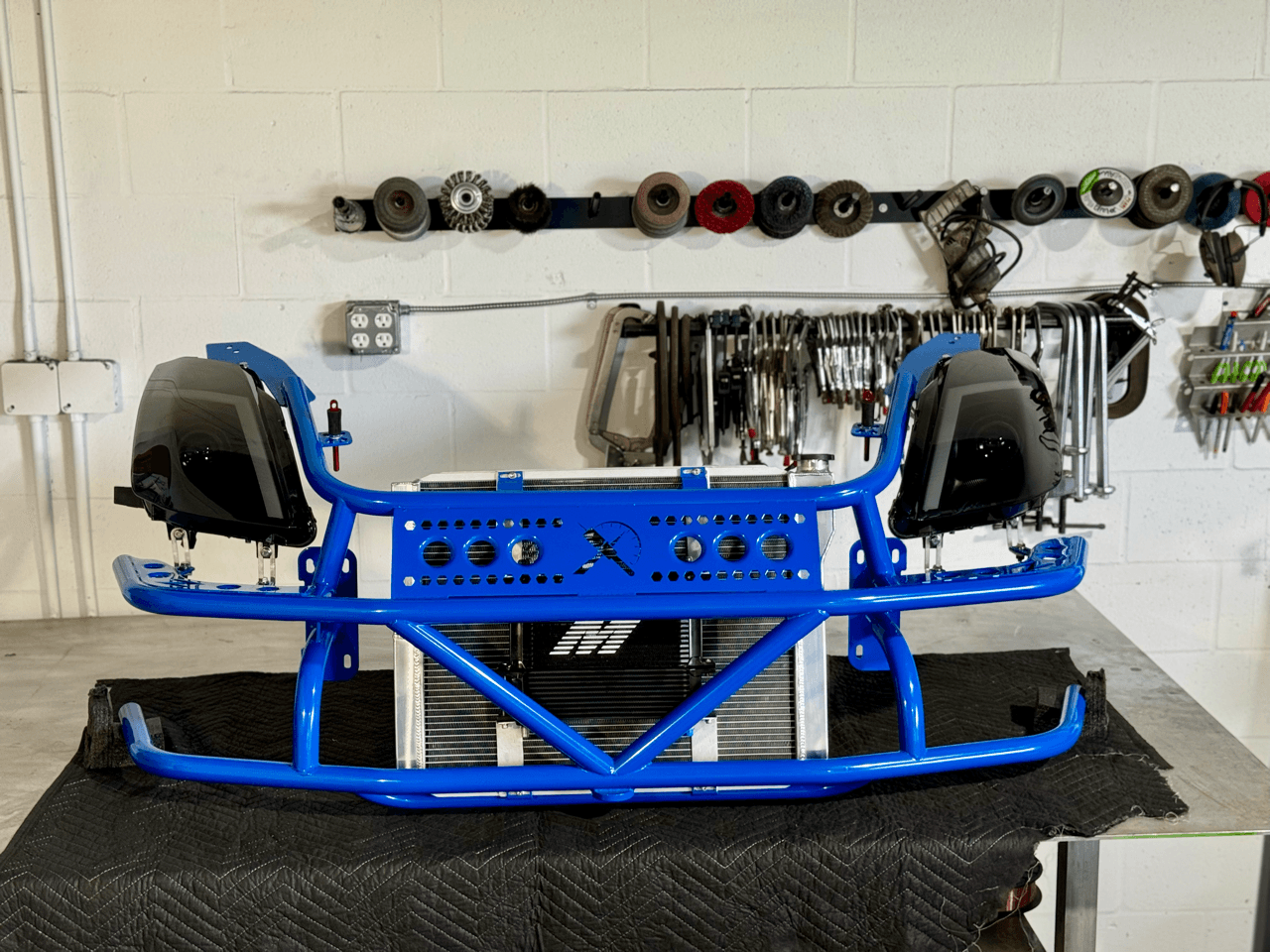 • Customizable: If running a turbo intercooler, we offer design tabs for the Mishimoto G line intercooler (rated for 800hp). For other setups, order your tube front without powder coating to allow for custom welding of mounting tabs.